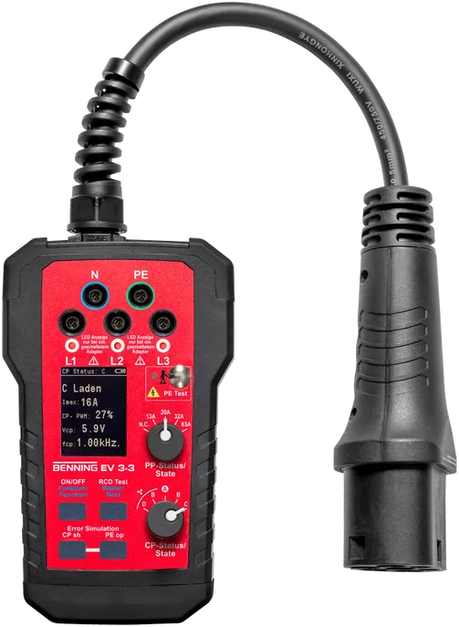 - De BENNING EV 3-3 kan stand-alone worden gebruikt voor het functioneel testen en oplossen van problemen met e-laadstations