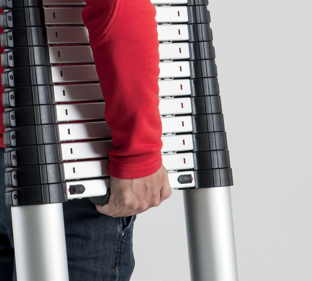 De ladder heeft extra brede sporten, is veelzijdig inzetbaar en is zeer compact voor tijdens het transport en het opbergen.