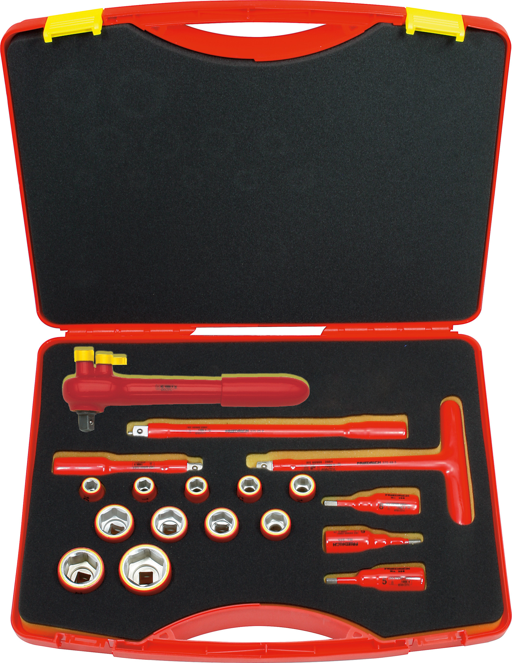 Friedrich 1/2" Dopsleutelset t 10-32mm 1000V VDE + Omschakelbare Ratel, 18-delig