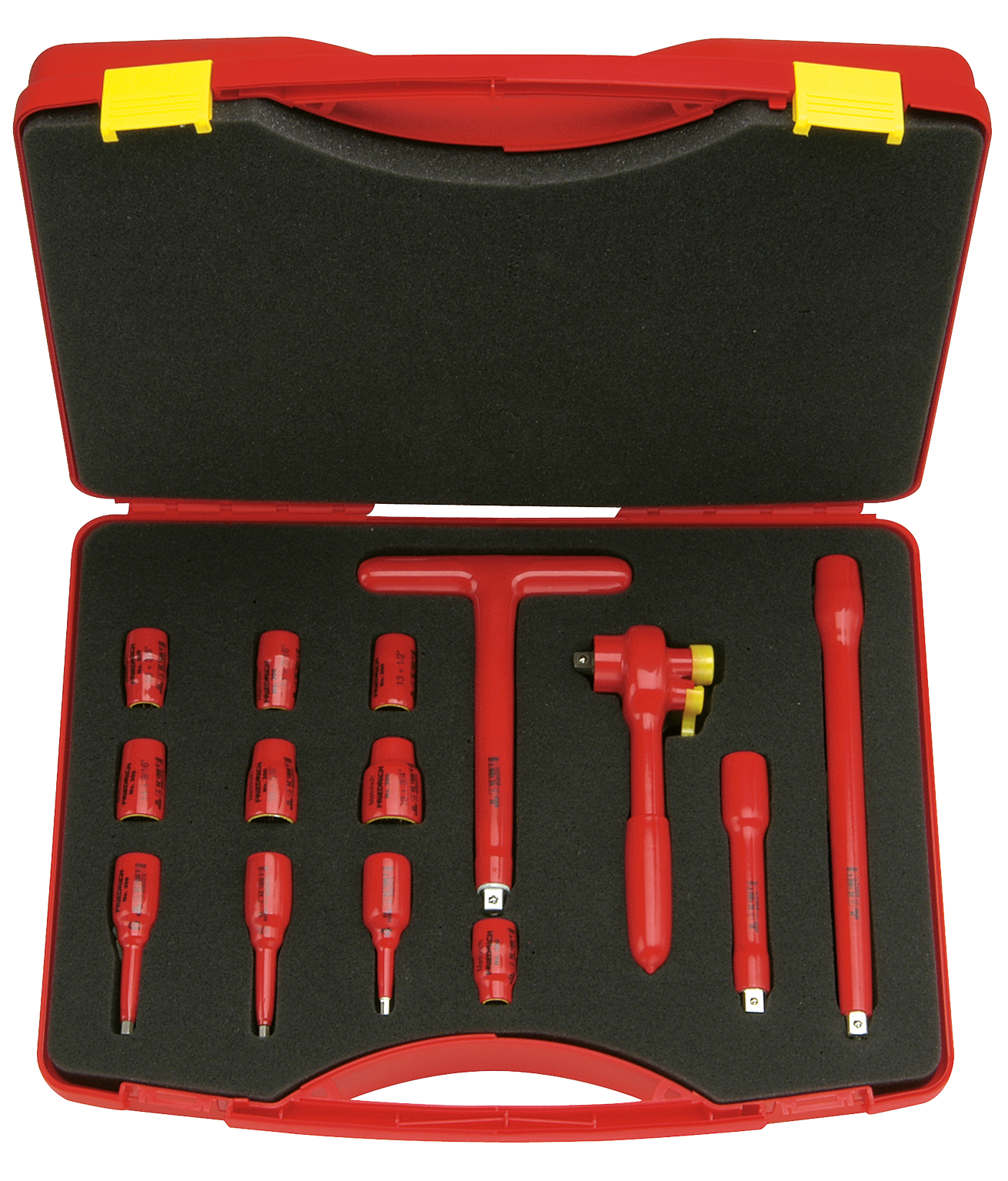 3/8'' Dopsleutelset 8-19mm 1000V + Omschakelbare Ratel, 14-delig