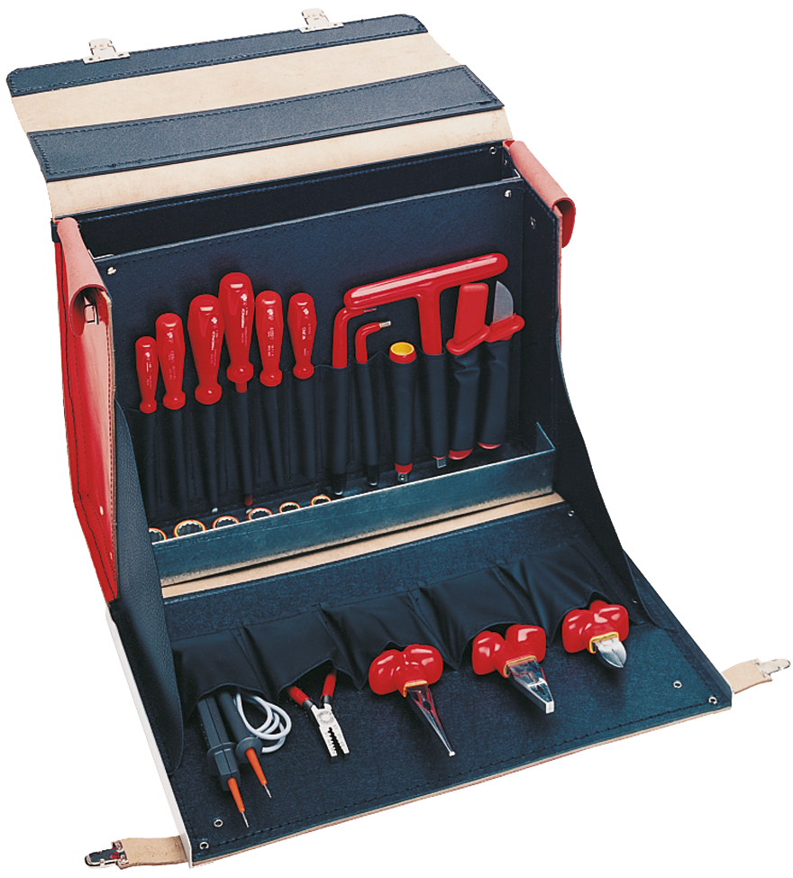 Gereedschapskoffer 1000V VDE "STANDARD", 30-delig in lederen koffer 430 x 310 x 140 mm, 7 kg