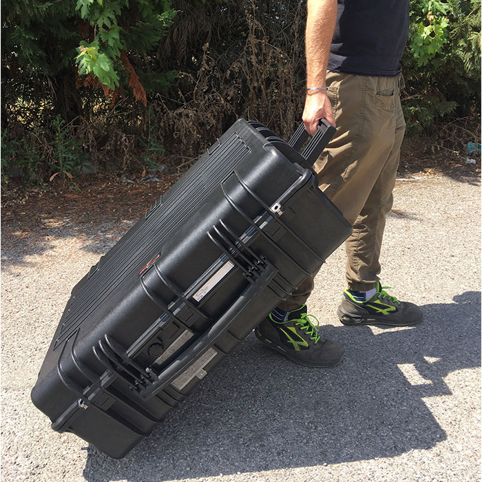 De speciale koffer is hermetisch afsluitbaar, waterdicht, stootvast en beschermt zo uw gevoelige uitrusting tegen alle denkbare invloeden van buitenaf