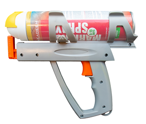 Spray pistool tbv markeringspray zodat je handen niet vies worden en je de markering met precisie en hoeveelheid wilt aanbrengen.
