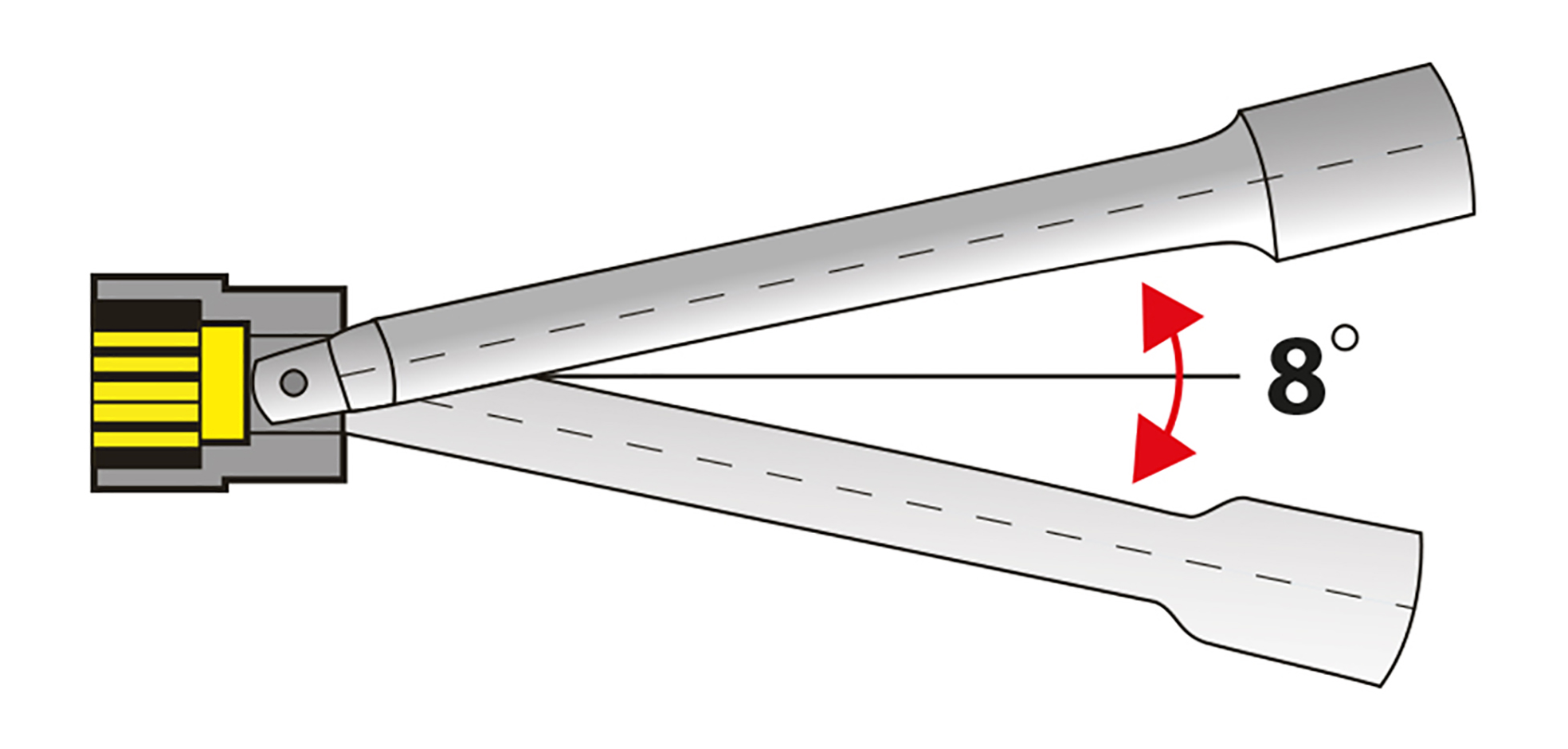 Voor moeilijk bereikbare toepassingen, met 8° zwenkhoek in beide richtingen