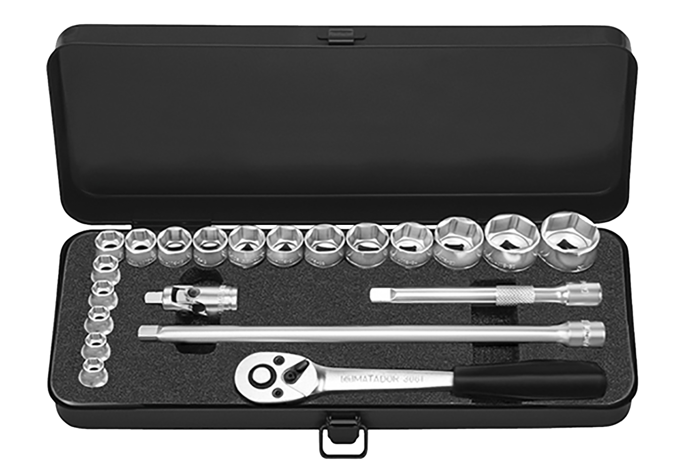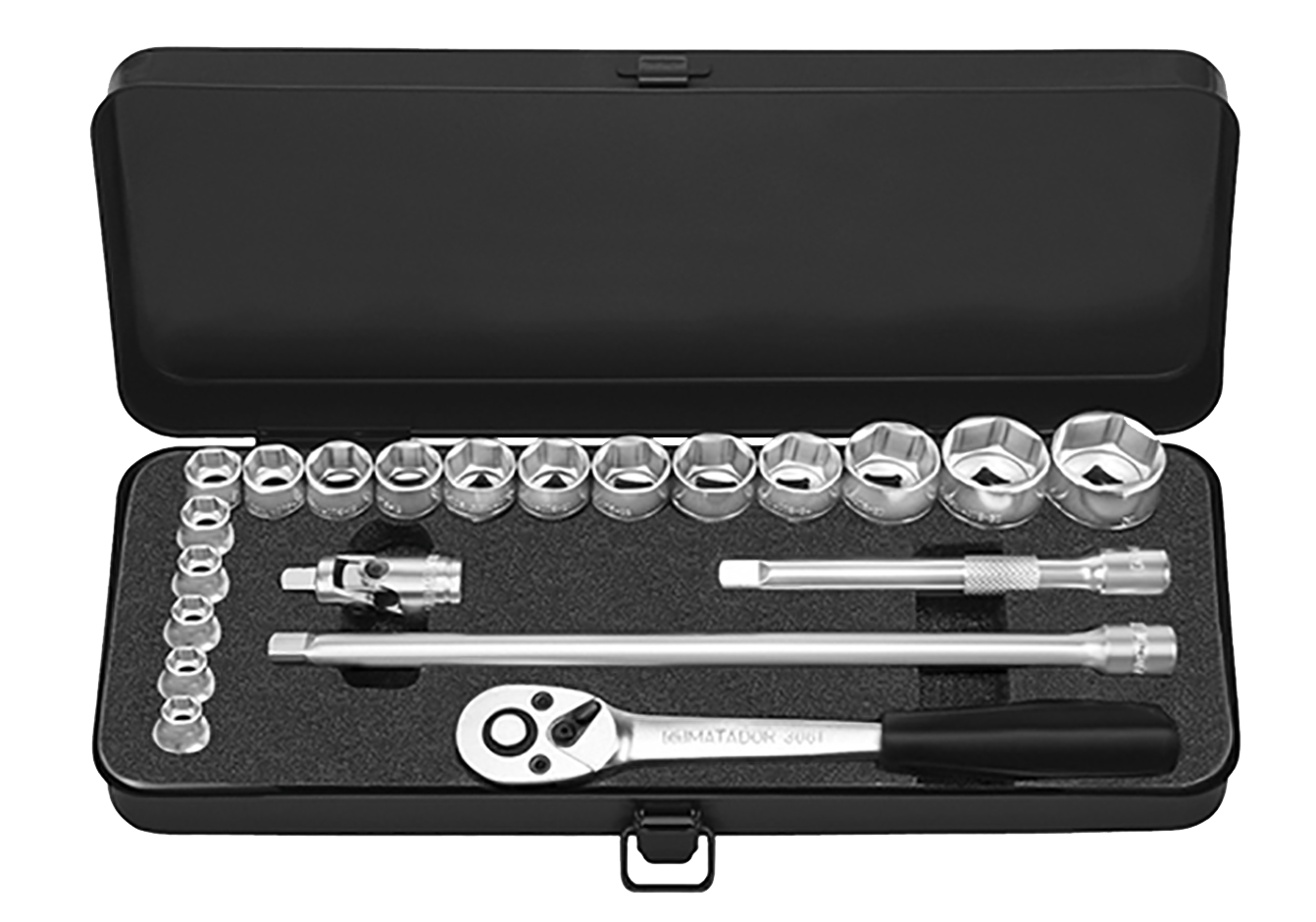 Matador 3/8" Dopsleutelset Zeskant 1/4"-7/8" in metalen kist, 35-delig