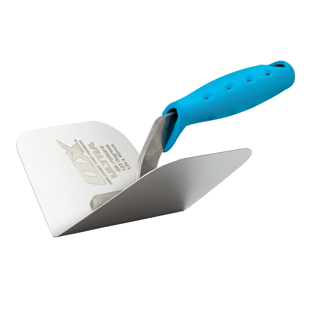 De OX Ultimate Internal Corner Troffel onderscheidt zich als een betrouwbare metgezel voor elk pleisterproject, met een flexibel roestvrijstalen mes dat stevig is gemonteerd op een robuuste aluminium structuur.