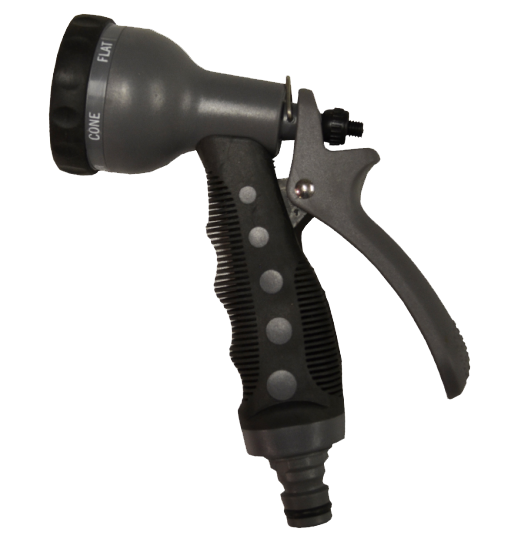 • 9 waterstralen: Hard en sterk om te reinigen, zacht om af te spoelen, waaiervormig om te bewateren en fijne nevel om te sproeien