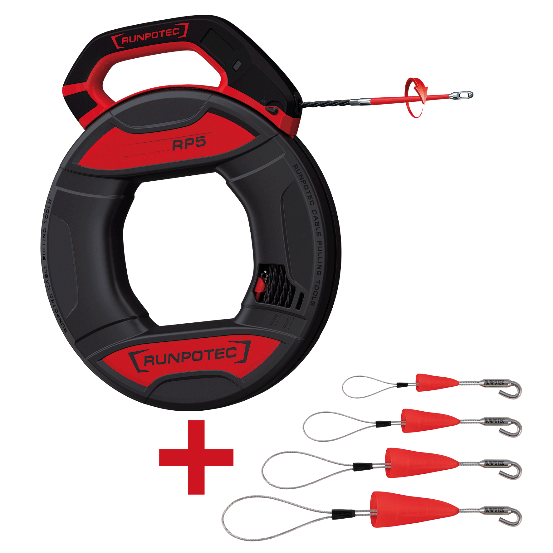 RUNPO ACTIESET Runpo 5 30m + Runpo Set Kabeltreklussen met haak 4-delig