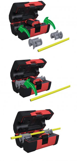 • Steek de geleidingsstukken paarsgewijs met de gekozen diameter naar boven in de daarvoor bestemde opening