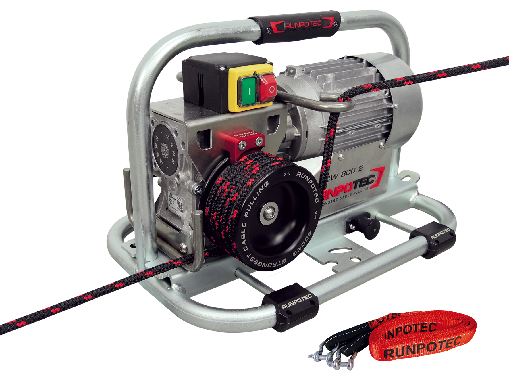 Ideaal voor het horizontaal trekken van één of meerdere kabels. Waar in andere gevallen meerdere personen nodig zijn voor hogere trekbelastingen, kan de kaapstander lier CW 800 E van RUNPOTEC door één persoon worden bediend om 800 kg of 400 kg te trekken. De kaapstander lier kan op zijn plaats worden bevestigd via de montagegaten of worden bevestigd aan massieve voorwerpen met behulp van de bijgevoegde riem. Dankzij een speciale koppelingsopening kan deze aan de trekhaak van een auto worden bevestigd. Het is ook mogelijk om de rail verticaal of horizontaal te monteren zodat de kaapstanderlier CW 800 E gemakkelijk kan worden opgehangen en bevestigd via de twee bevestigingsbouten.Exclusief trolley-montagerail.