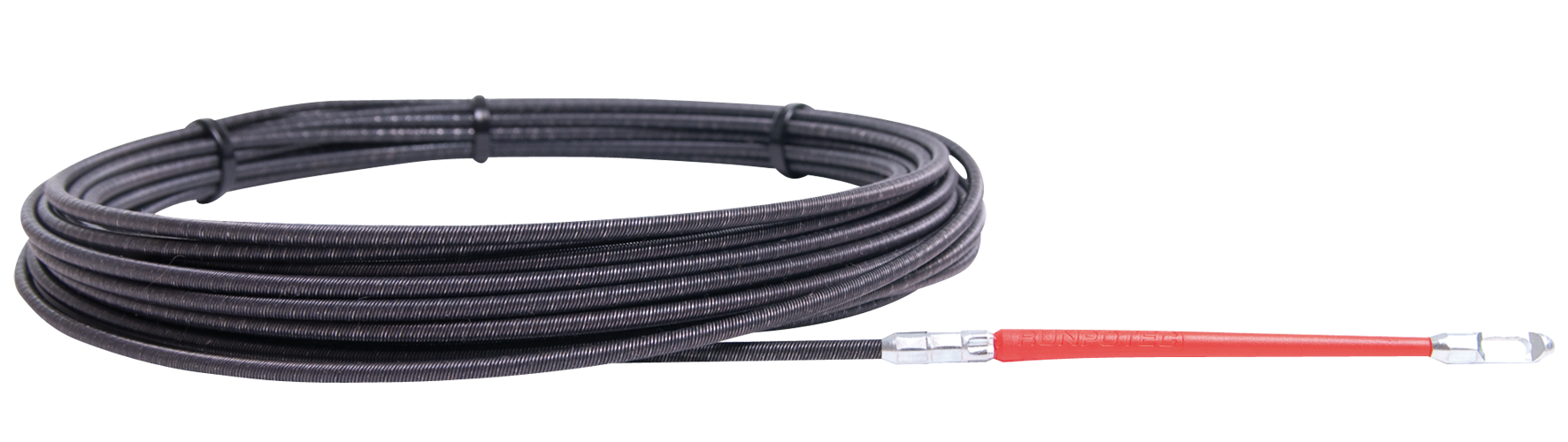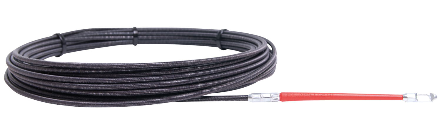 Stalen trekveer met RunpoGleiter, dit flexibele rubberen beginstuk maakt het invoeren in moeilijke bochten, zelfs in flexbuis zeer eenvoudig.