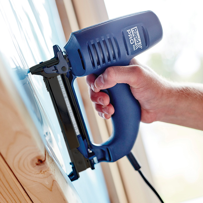 Krachtige elektrische tacker ideaal voor veeleisend professioneel gebruik en precieze bediening. Met robuuste onderdelen en duurzame bouwkwaliteit. De R553 biedt een lange levensduur, zelfs bij intensief gebruik en is vooral effectief voor meubelstoffering, textiel, tapijten en leer. Afneembaar neusstuk maakt het mogelijk om vastlopers snel op te lossen, terwijl de 3,5 meter lange kabel de toegankelijkheid en efficiëntie verhoogt. Geleverd in een handige beschermende opberg- en transportkoffer met een snelstartgids die u helpt de tacker correct te gebruiken en de juiste nieten te selecteren. Inclusief starterset van 540 nieten, 750 brads en speciaal neusstuk voor het bevestigen van combi clips voor wand- en plafondplaten.