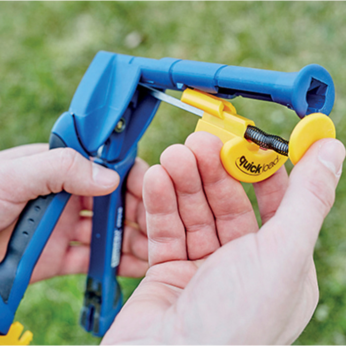 De FP216 maakt gebruik van VR16 hekwerkringen en is zeer geschikt voor het vastzetten van hekwerken op moeilijk bereikbare plaatsen en op grote vlakken, bijvoorbeeld voor dierenkooien.