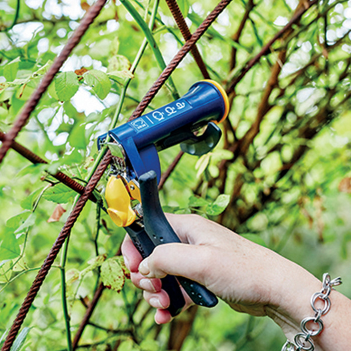 Ontworpen om werk in de tuin makkelijker en comfortabeler te maken. Deze betrouwbare tang is ideaal voor het opbinden van jonge planten of het bevestigen van takken en netten. De handige 3-staps instelbare sluiting zorgt ervoor dat planten eenvoudig opgebonden of bevestigd kunnen worden zonder beschadiging. Met extra gebruiksgemak door het snel te laden magazijn en sluiting voor eenvoudige opslag. Geschikt voor gebruik met VR38 hogringen.