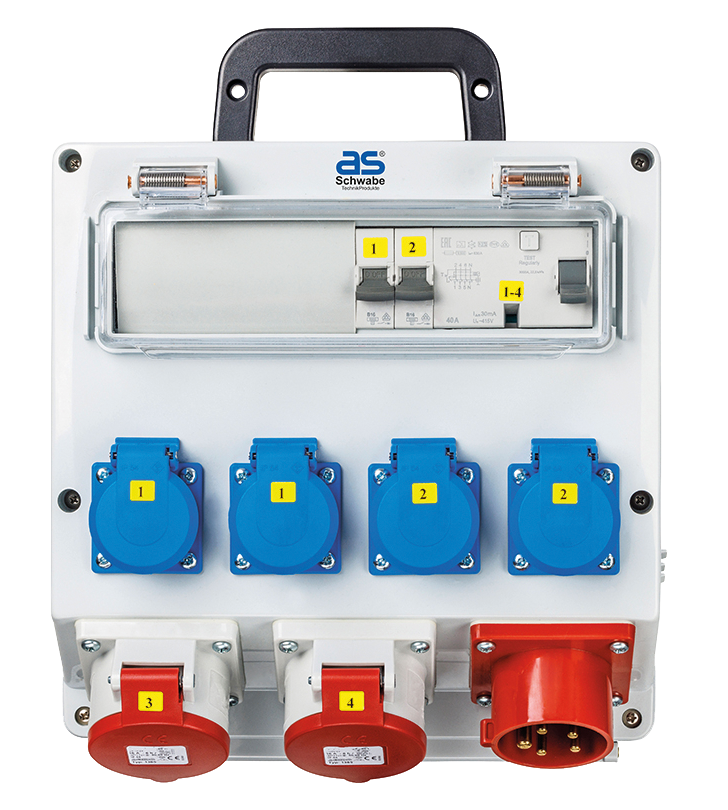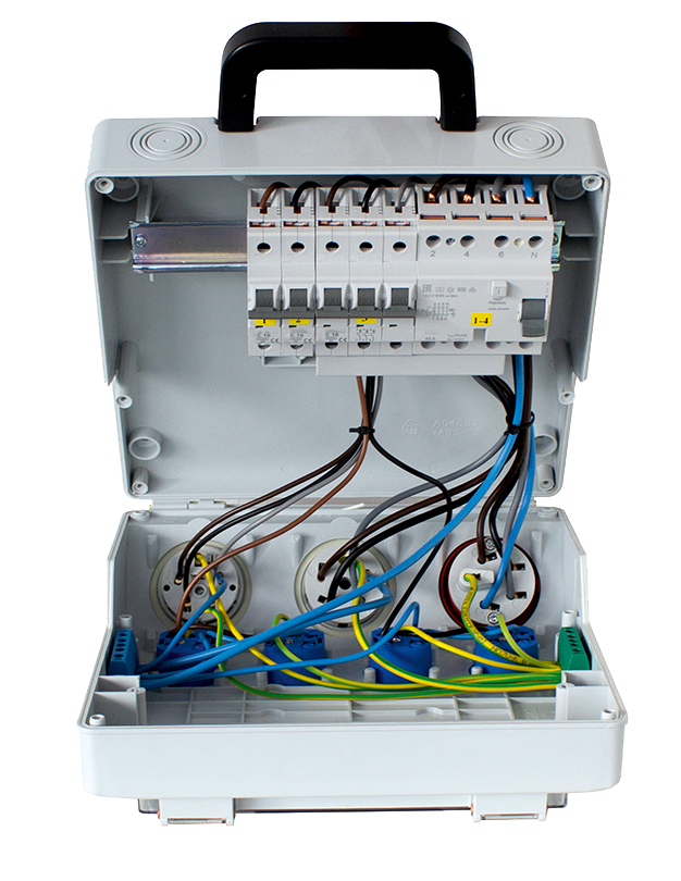 • 4x geaarde contactdoos 230 V, 16 A (over fasen verdeeld)