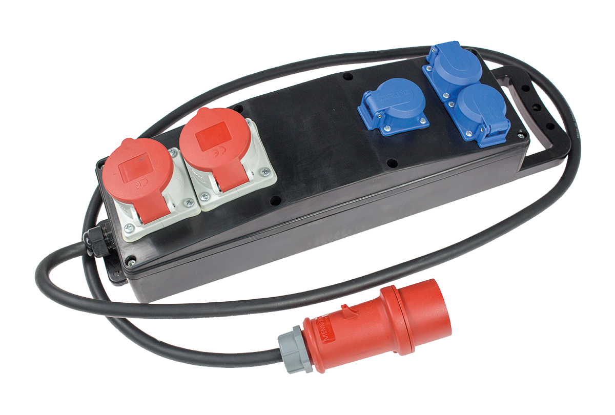 CEE Stroomverdeler Massief Rubber S4 400V/16A IP44 5-voudig H07RN-F 5G2.5 2m