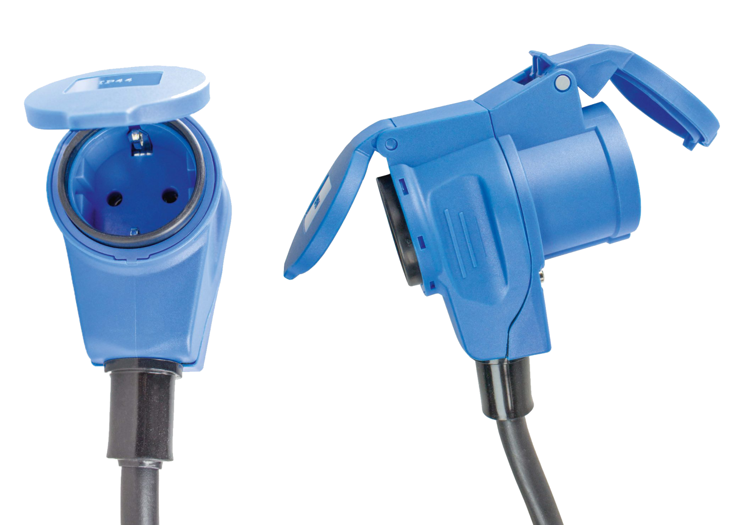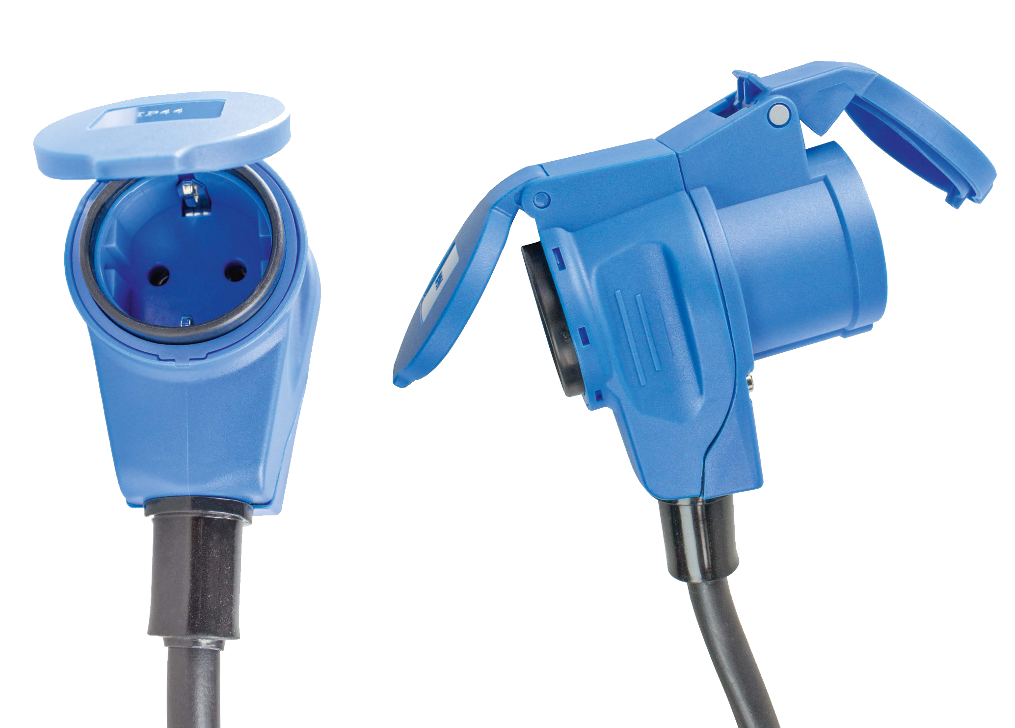• CEE-combi contactstop 230V/16A, 3-p + geaarde contactdoos 230V/16A, beide met scharnierend deksel