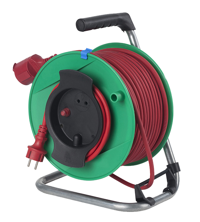 Daarop kunt u eenvoudig uw gereedschap aansluiten en tijdens het werken de volledige lengte van de kabel gebruiken zonder dat u de kabelhaspel hoeft te verplaatsen