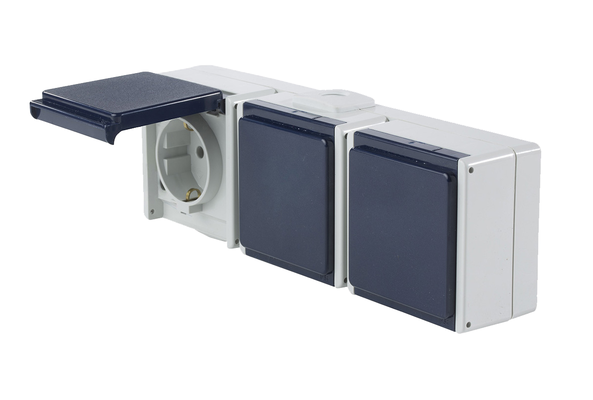 Schwabe Opbouwcontactdoos 230V/16A IP54 Grijs tot 2.5mm² 3-voudig horizontaal