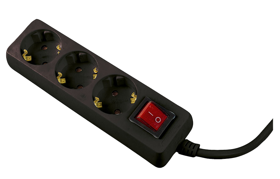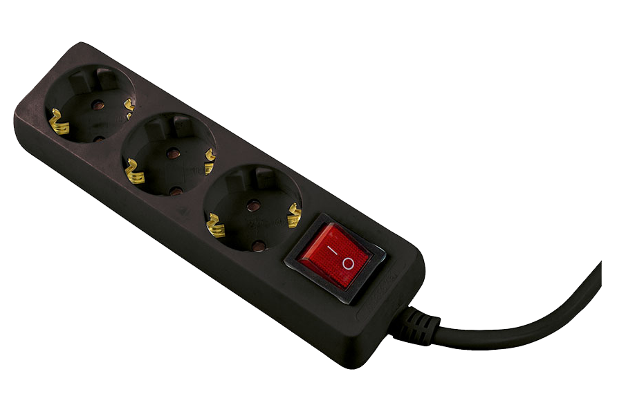 Schwabe Stekkerdoos 3x randaarde met schakelaar + platte stekker kabel H05VV-F 3G1,5 zwart 2m