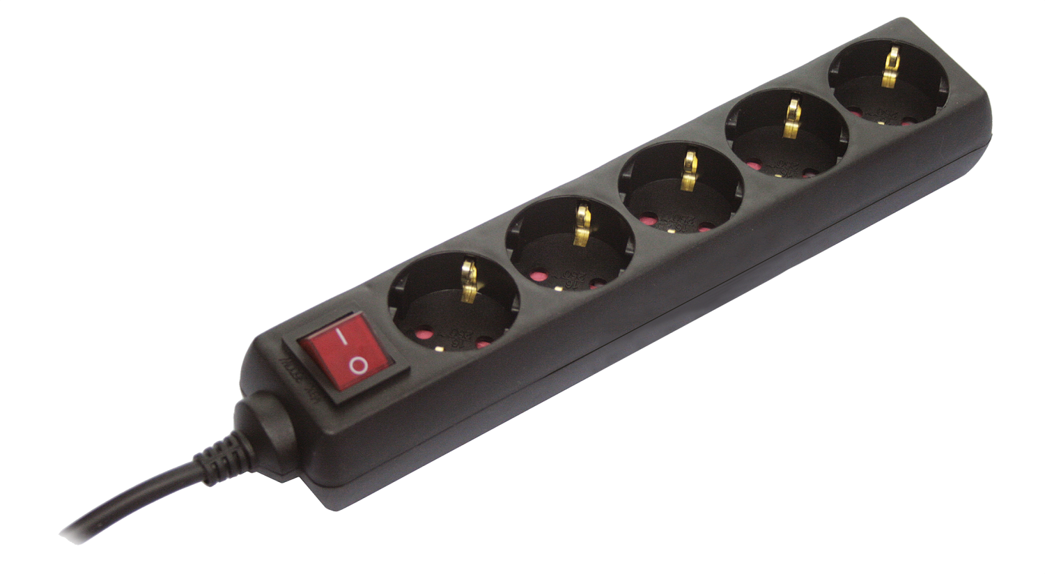 Schwabe Stekkerdoos 5x randaarde met schakelaar kabel H05VV-F 3G1,5 zwart 1,4m