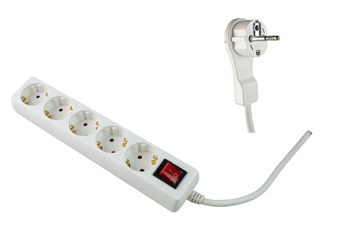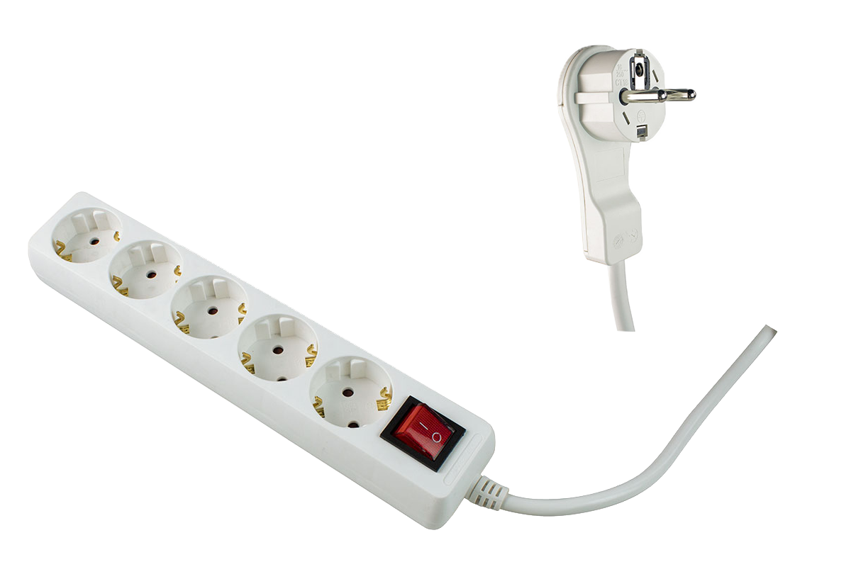 Schwabe Stekkerdoos 5x randaarde met schakelaar + platte stekker kabel H05VV-F 3G1,5 wit 2m