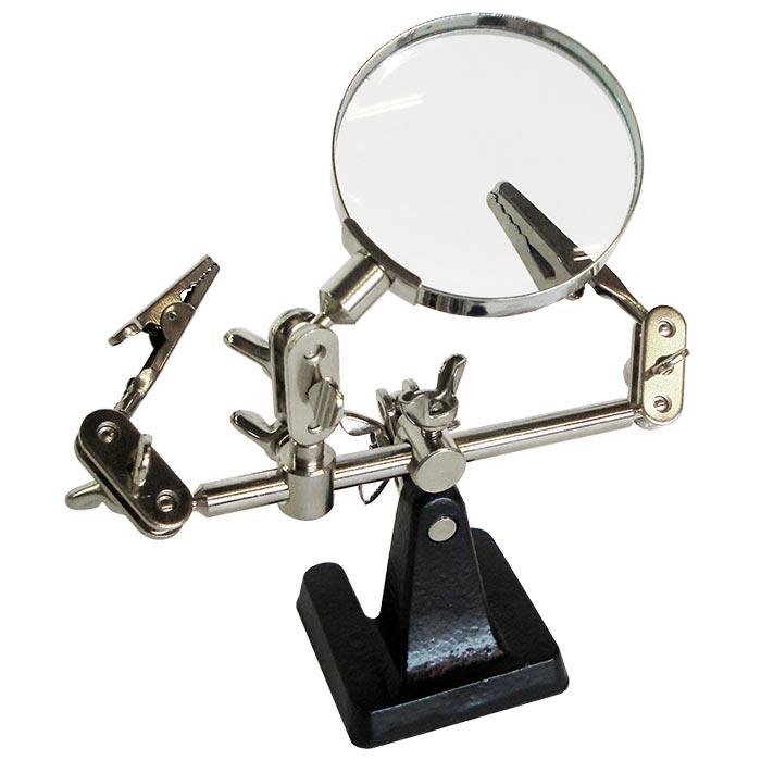 Deze derde hand van Stannol is de ideale hulp bij precisiewerk zoals solderen. Dankzij het geïntegreerde vergrootglas met 4x vergroting behoudt u perfect zicht op de kleinste details. De twee verstelbare armen met klemmen zijn in vier richtingen te bewegen, zodat u werkstukken stevig kunt fixeren in de gewenste positie. Zo houdt u uw handen vrij en werkt u efficiënter en nauwkeuriger.