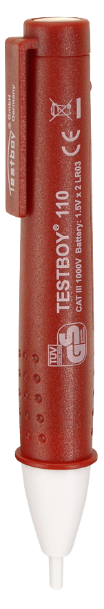 De contactloze spanningstester Testboy 110 detecteert spanningsvoerende geleiders vanaf 12 V