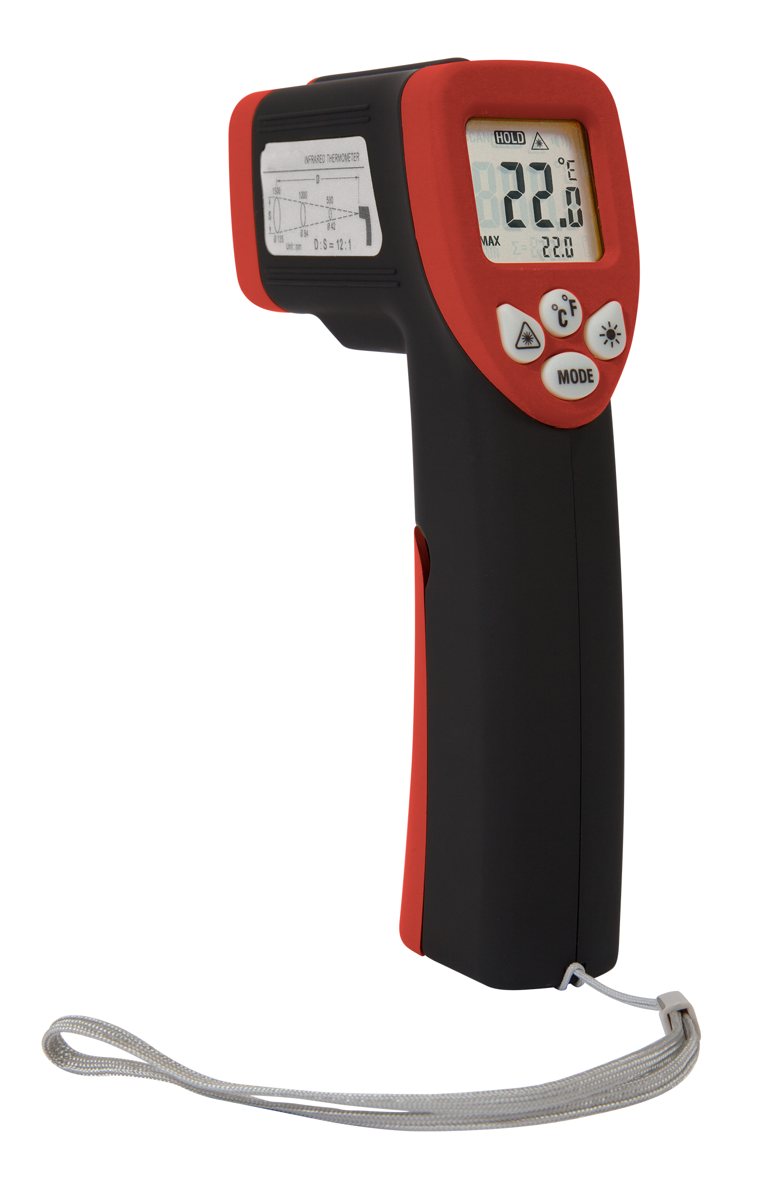 Zeer gebruiksvriendelijke infrarood temperatuurmeter met laser pointer