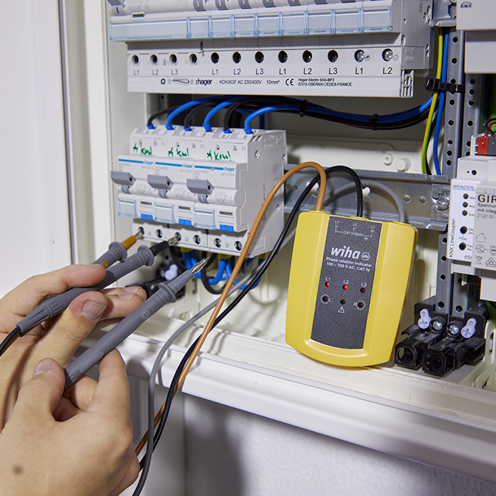 De draaiveldmeter stelt betrouwbaar de fasedraairichting vast en waarschuwt bij verkeerde bedrading